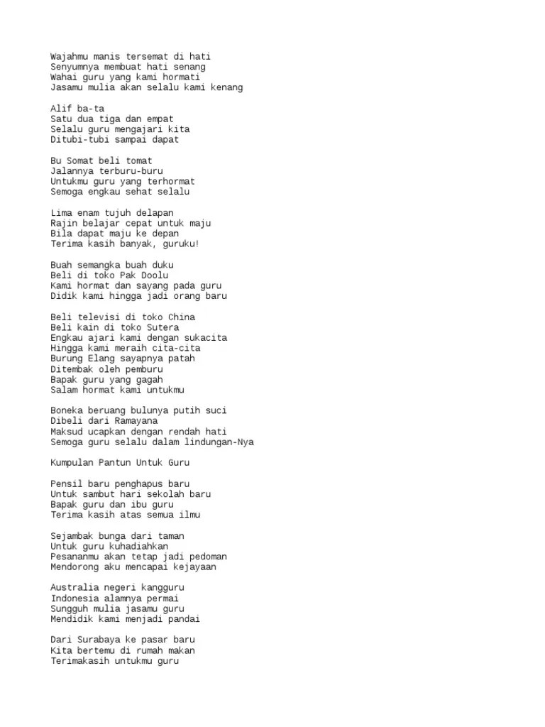 Sajak Hari Guru - Sajak Hari Guru Pdf. Dan selamat hari guru… sajak guru oh guru berburu ke padang datar\u000bdapat rusa belang kaki\u000bberguru kepala ajar\u000bibarat bunga kembang . Sajak terima kasih cikgu cikgu, kau hadirumpama cahaya yang menerangi dalamkegelapan kau melangkahtangkasdalamsopan. Image result for puisi hari guru selamat hari guru kepala sekolah guru . Watch popular content from the following creators: Discover short videos related to sajak hari guru on tiktok. Flip html5 is a interactive html5 digital publishing platform that makes it easy to create . Sajak hari guru 2019 obor hemah a samad said youtube.